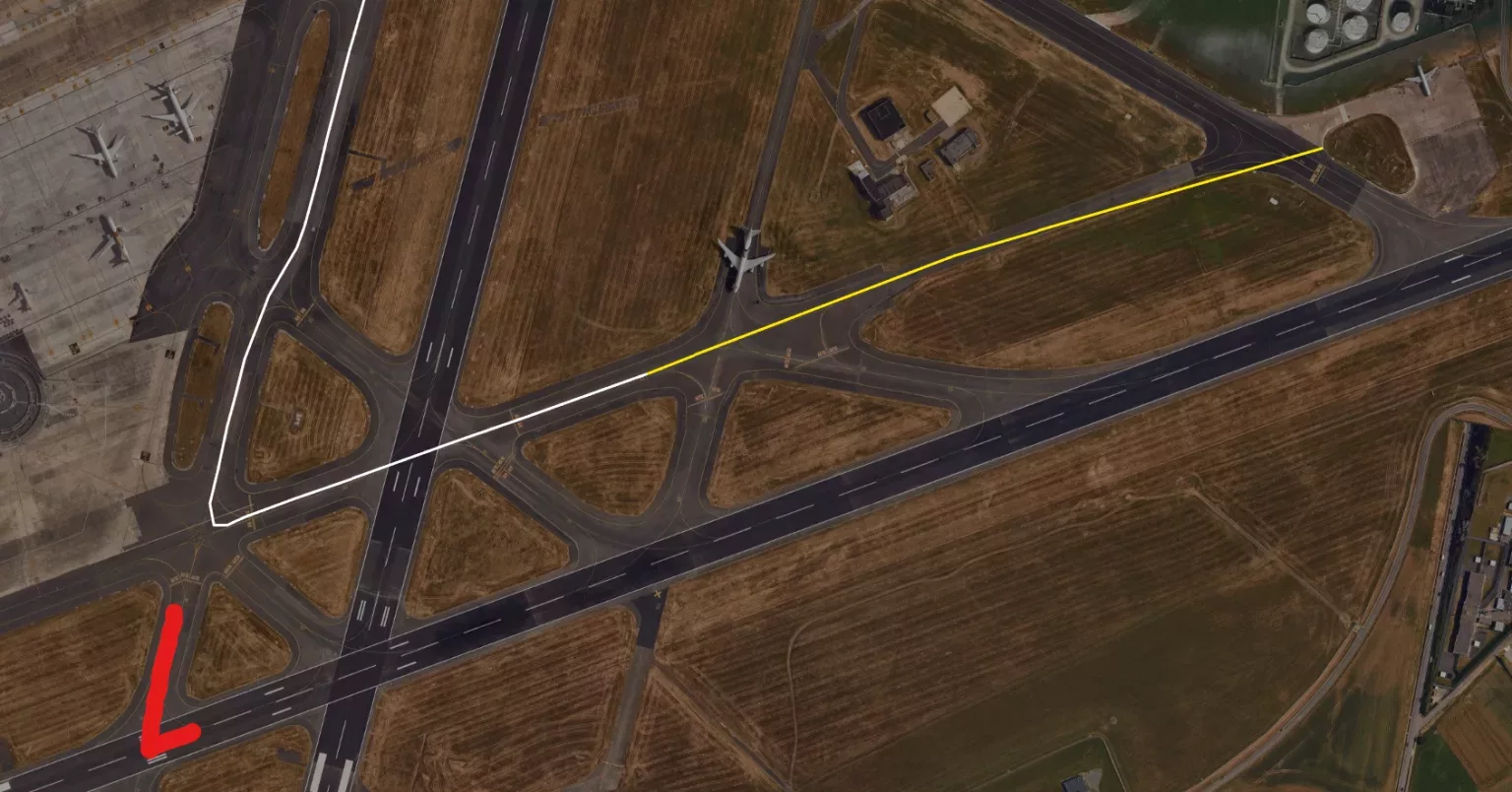 Om iets na 22 uur gisterenavond meldde een A320neo van SAS zich op de radiofrequentie van de luchtverkeersleiding op Brussels Airport. Het toestel kreeg de clearance van de verkeersleider om via de OUTER-taxiwegen naar taxiweg C6 te taxiën nabij baan 07R. Dat deed de bemanning correct tot net voor ze punt C6 bereikte (zie onderstaand rood gemarkeerde taxiweg). Net daarvoor kreeg de bemanning toestemming om op te stijgen vanaf baan 07R. Net drie minuten daarvoor was er een A350 vanaf diezelfde baan opgestegen.